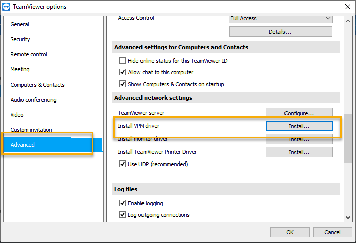 Then go to Advanced > Install VPN Driver